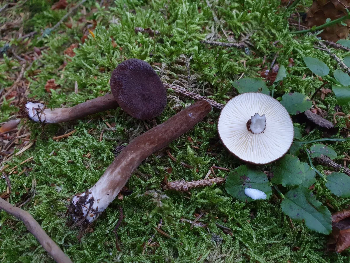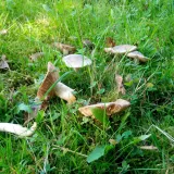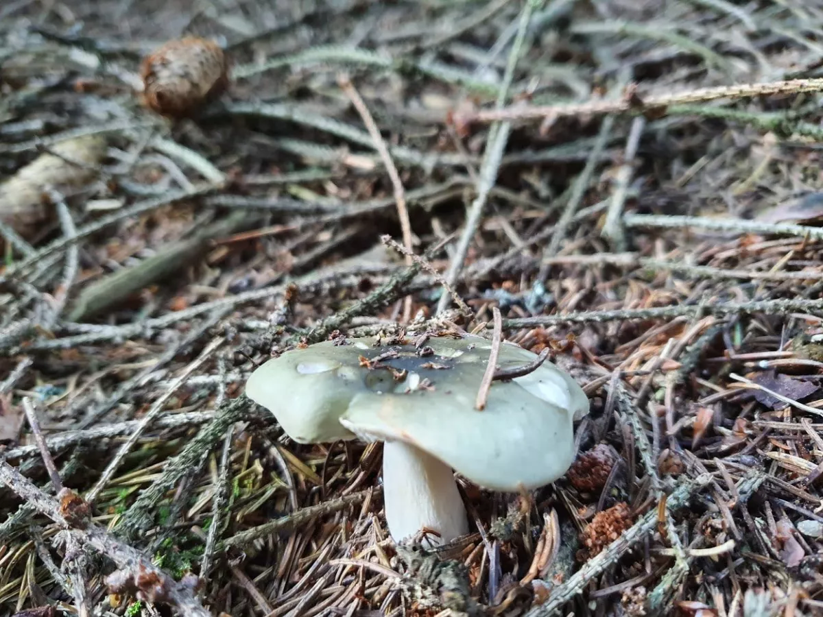 Já měl docela štěstí na holubinky, tu největší jsem žel nevyfotil, byl jsem tak zničenej taháním koše, že mě to ani nenapadlo, říkal jsem si Až doma a pak jsem jí sloupnul a bylo pozdě, ale podle literatury to mohla být namodralá i když byla hnědá ( a takových bylo víc), pak trávozelená, ty jsou tam tradiční a poprvé i nazelenalá, dokonce ve dvou exemplářích. Pak kvanta černajících a smrdutých a hned vedle ryzce peprné. Ovšem cca 90% úlovků byly hřiby smrkové a jak píšu níže pár exemplářů hnědáčků. Kupodivu jedlý ryzec žádný, ani smrkový, natož černohlávek, které tam docela rostou, holt co les, to originál.