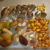 Celý úlovek č.3, kozák březový, hřib smrkový, bedla vysoká, hřib smrkový, celý úlovek č.2, ryzec smrkový, hřiby smrkové, rodinka můchomůrek červených, muchomůrka č. s hřibem smrkovým, holubinka mandlová, holubinka trávozelená?, březovník obecný, celý úlovek č.1, ryzec černohlávek, hřib smrkový, neurčená houba, hřib smrkový