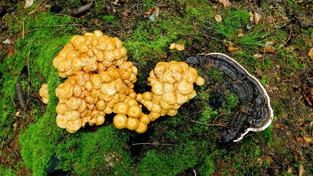 ...hezké odpoledne nahoubaři...pár včerejších houbiček z Drnovic...letošní první - focený - Sírovec žlutooranžový a asi Špičky travní...???...