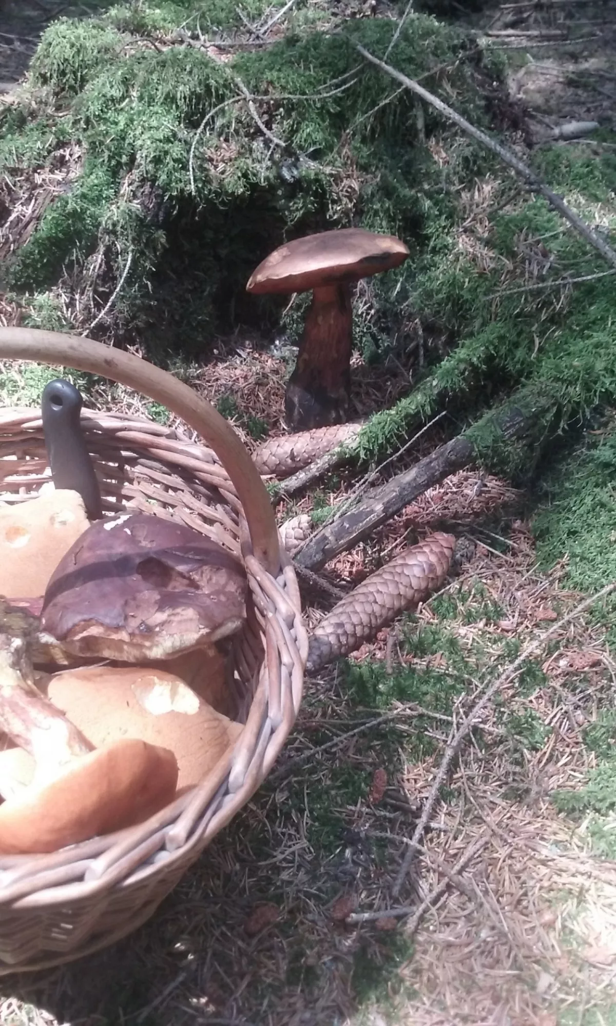 Ani jsem v to nedoufal , ale i v neděli v lese s hafo svátčních houbařů se dá najít košíček.