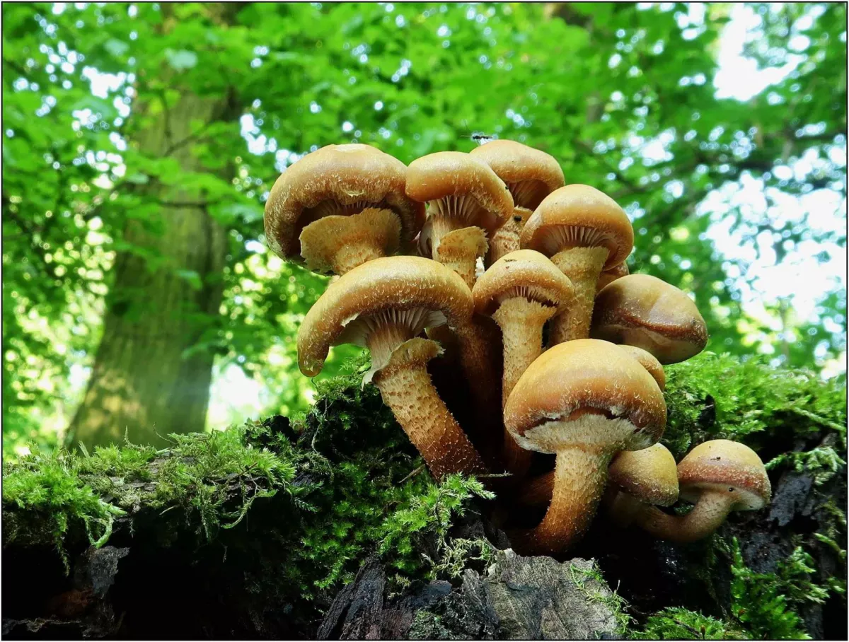sírovec žlutooranžový, opeňka měnlivá, třepenitka svazčitá, pnízovka dubová, penízovka kořenující, vajíčko hadovky smrduté, klanolístka obecná.