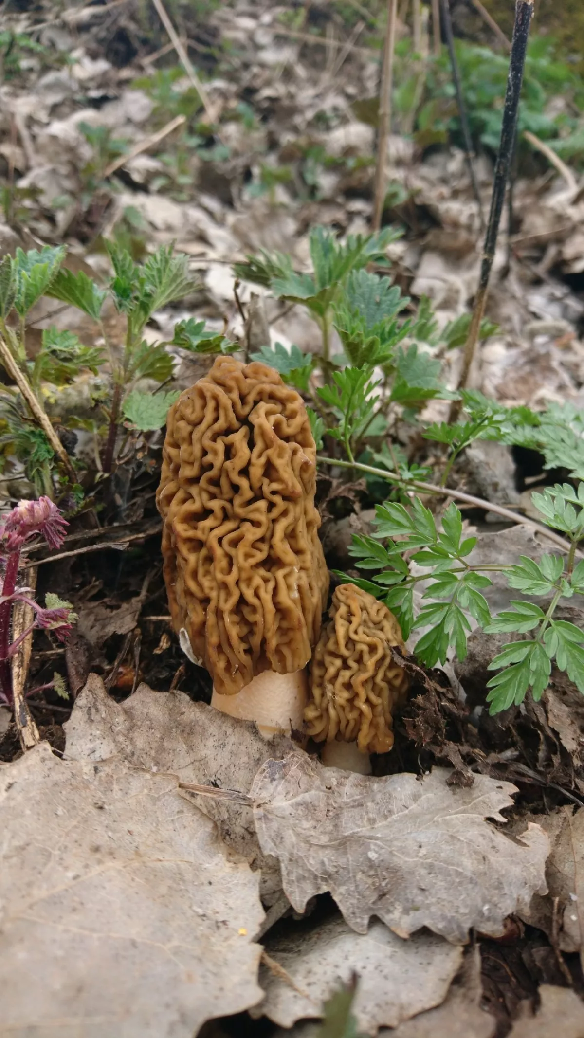 Zdravím, nedělní výlet v lese s parťákem, víc lidí než hub. Prášivky, troudnatec, sasanky - ani v mokřinách nic neroste. Dnes ve Slaném jen pár kapek, dubnové hřibovité u nás asi nebudou. Mějte se fajn.