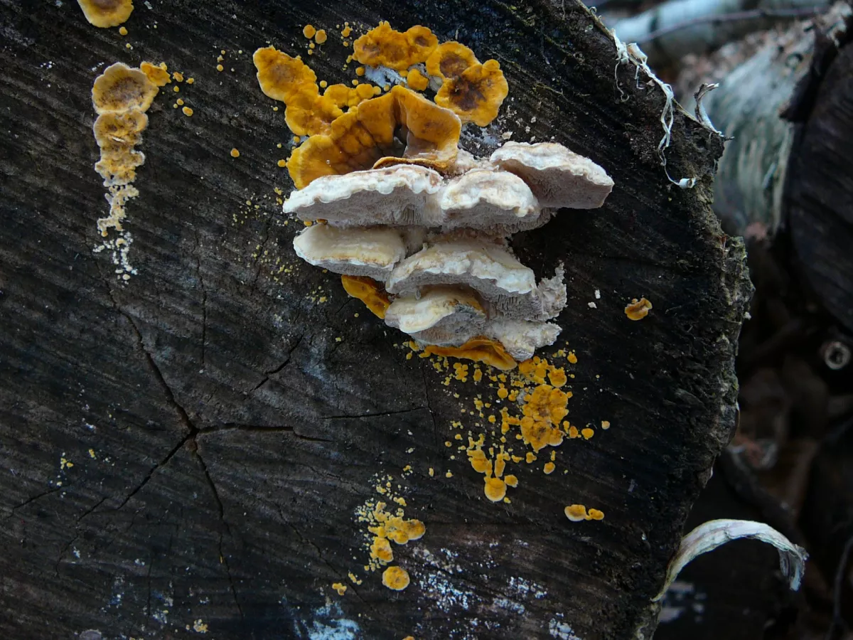 Zdravím,tak na svých toulkách jsem se podíval do starého stromového porostu u řeky,hodně se tady vyskytoval Troudnatec kopitovitý,na padlém holém kmenu byla snad Voskovička citronová,na bezince v bídném stavu Bolcovitka,na rozřezaném kmemu vrby byla Penízovka sametonohá a Outkovka vonná ve skupině,kousek dál se nacházel Dřevokaz papírový,překvapil mě Talovín zimní a Terčovník zední byl též pěkný na foto. Tak se mějte fajn !