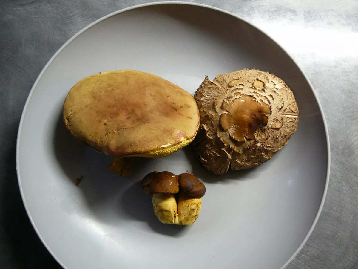 ...hezký večer nahoubaři...ze včerejšího lesa...pár Holubinek...Ryzec...Lištičky pomerančové...Outkovka pestrá...poslední houba bych tipnul na Strmělku mlženku...