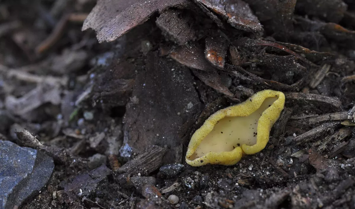 To ucho myslíš ouško - Otidea? Je to divně žluté, nemohla by to být řasnatka síromléčná?