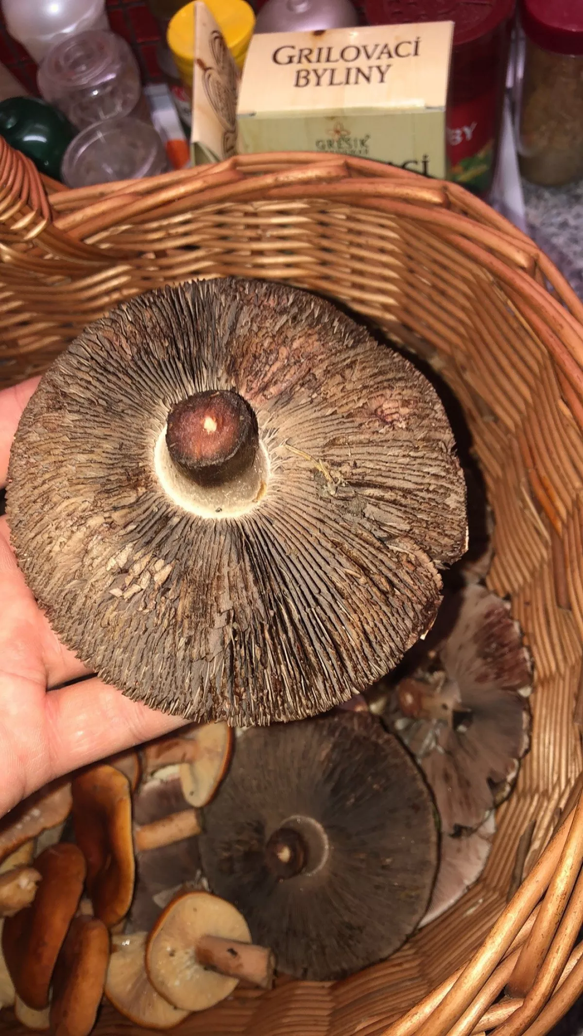 U první jsem byl přesvědčen, že jde o jedlý druh žampiónu, dle internetu pravděpodobně pečárka opásaná. Při odřezu se zbarvila noha do tmavě červena, postupně do hněda. Nalezena v jehličnatém lese.
