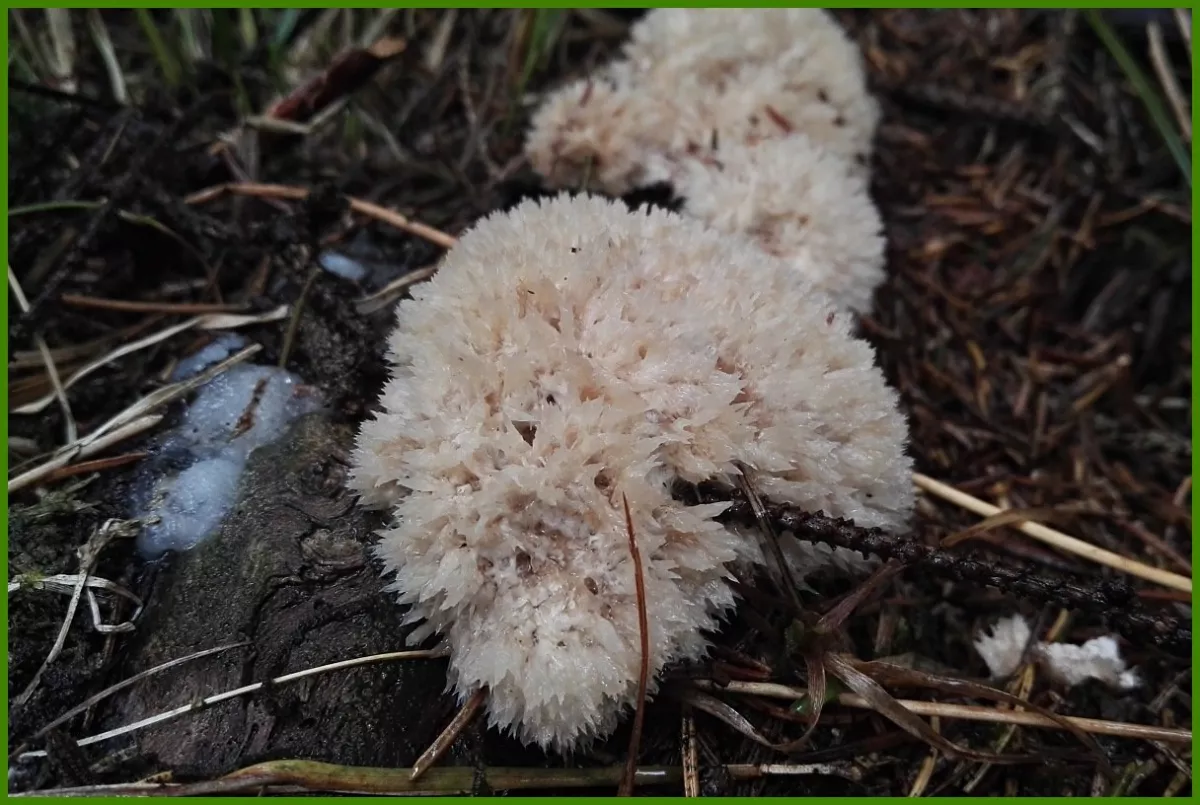 PS. Ještě jsem našel na tlejícím dřevě ve smrkovém lese tuto houbu,možná jde o začínajícího korálovce jedlového,ale jistota žádná. Pokud to někdo poznáte,napište,díky.