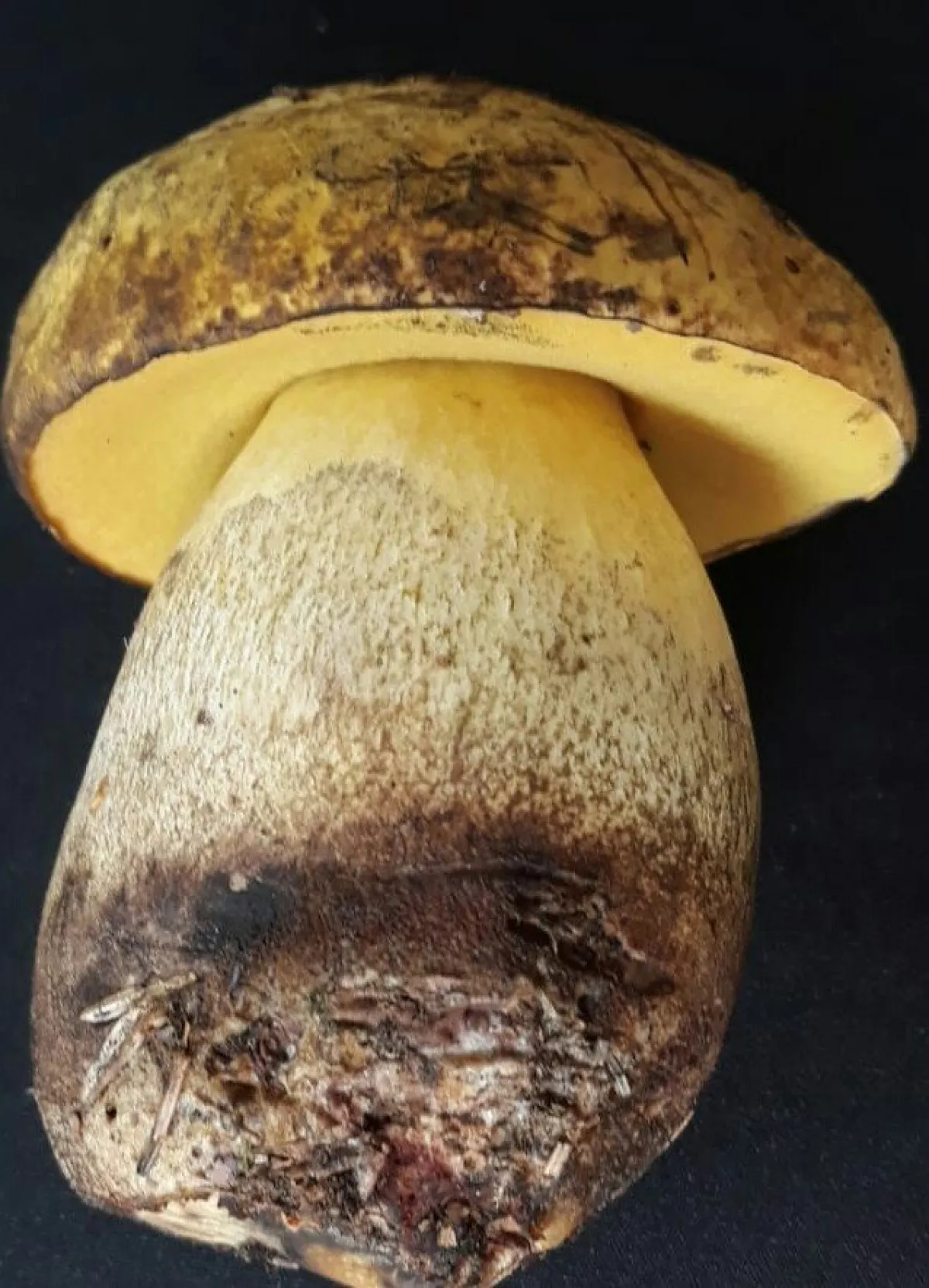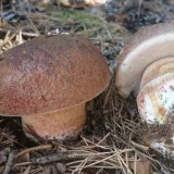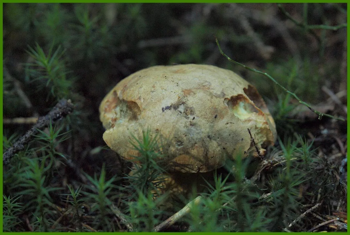 Já bych tipoval na kováře odbarveného (Boleus luridiformis var.disclor) , ale možná , že se pletu.Ještě by připadal možná i v úvahu tady zmiňovaný kozák dubový , ale jeho noha v řezu nepatrně červená a klobouk po otlaku nehnědne oproti kováři odbarvenému.