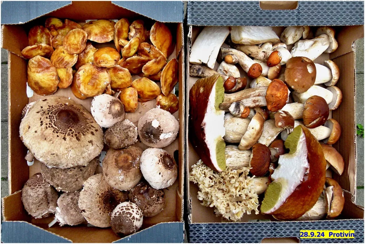 V pátek 27.9. v okolí Dobříše. V lese je spousta klouzků a bedel. Hřiby začínají. Není to zatím nic masového, ale dají se najít místa kde jich roste i více. Hledal jsem v počátku spíše ve smrčí, kde se něco najít dalo. Pak jsem zkusil jít do listí a to byla k mému překvapení trefa. Chce to ale mít oči na stopkách, protože to maskování spadaným listím je důkladné. Málem jsem jednoho dubového zašlápl a když jsem se pro něj sehnul, tak jich v okolí bylo dalších cca 30. Je to většinou na kraji lesa nebo u cest v "pangejtech". Hřibů bylo nakonec 80 a 10 kozáků. Červivost minimální. Bedly a klouzky jsem nebral, nebylo by to kam dát.