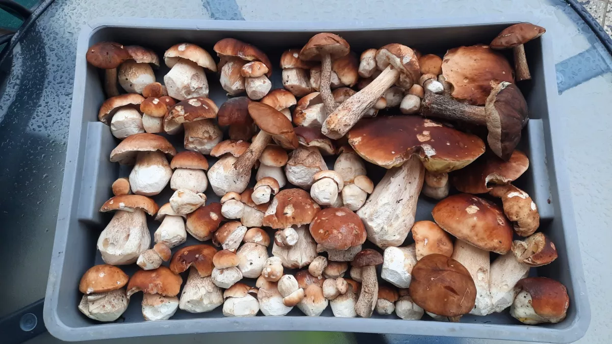 Pro pantátu: většina je dubových z jednoho konkrétního místa na které chodím už cca 30 let. Letos již druhá úroda. Ne že by v listí nemohli růst i smrkové hřiby, ale tady to jsou opravdu dubové. Je to pod buky, pod kterými mají dubové hřiby hodně tmavé klobouky. V lese jsem je hned dost ořezal, takže tam na fotce není na třeni moc vidět to tmavé síťování.