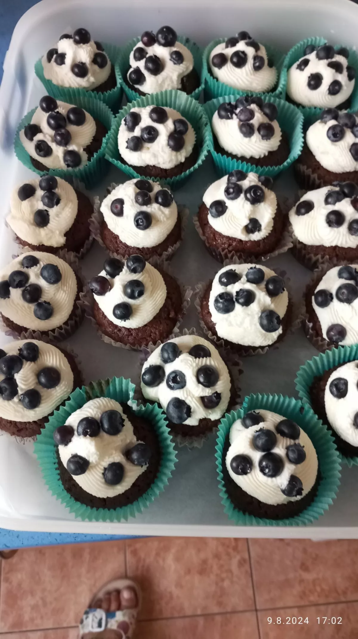 A i sladkosti byly. Upekla jsem čokoládové muffiny s čepicí z mascarpone a borůvkami.