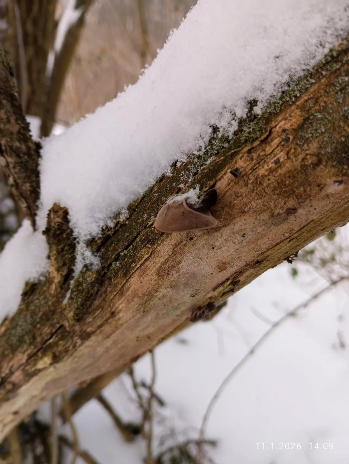 U nás napadl další sníh, tak jsem si ho šla po obědě užít. Než za pár dní zase roztaje. Kromě jednoho mini ušíčka jsem žádnou houbu neviděla, dřevomilky jsou pod sněhem. Penízovky ani hlívy nerostou...