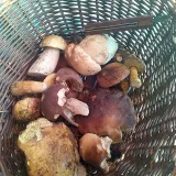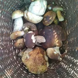 Jela jsem se podívat do lesa pod Bradlem. Kolem půl osmé bych potřebovala baterku, ale kromě muchomůrek citronových a nějakých ryzců, hnojníků apod. nic. Do košíku nebylo co dát. Později jsem na louce našla rozmočeného kozáka a křemenáče a v dalším lese několik přerostlých dubáků. Ale našla jsem pár růžovek a několik krásných bedlí. A nakonec mimo les pod lípou obří plodnici nevím čeho... myslela jsem, že je to hřib medotrpký, ale měl červený třeň i rourky. Vedle byl další menší hřib, červivý, napůl vyvrácený a dužnina modrala.