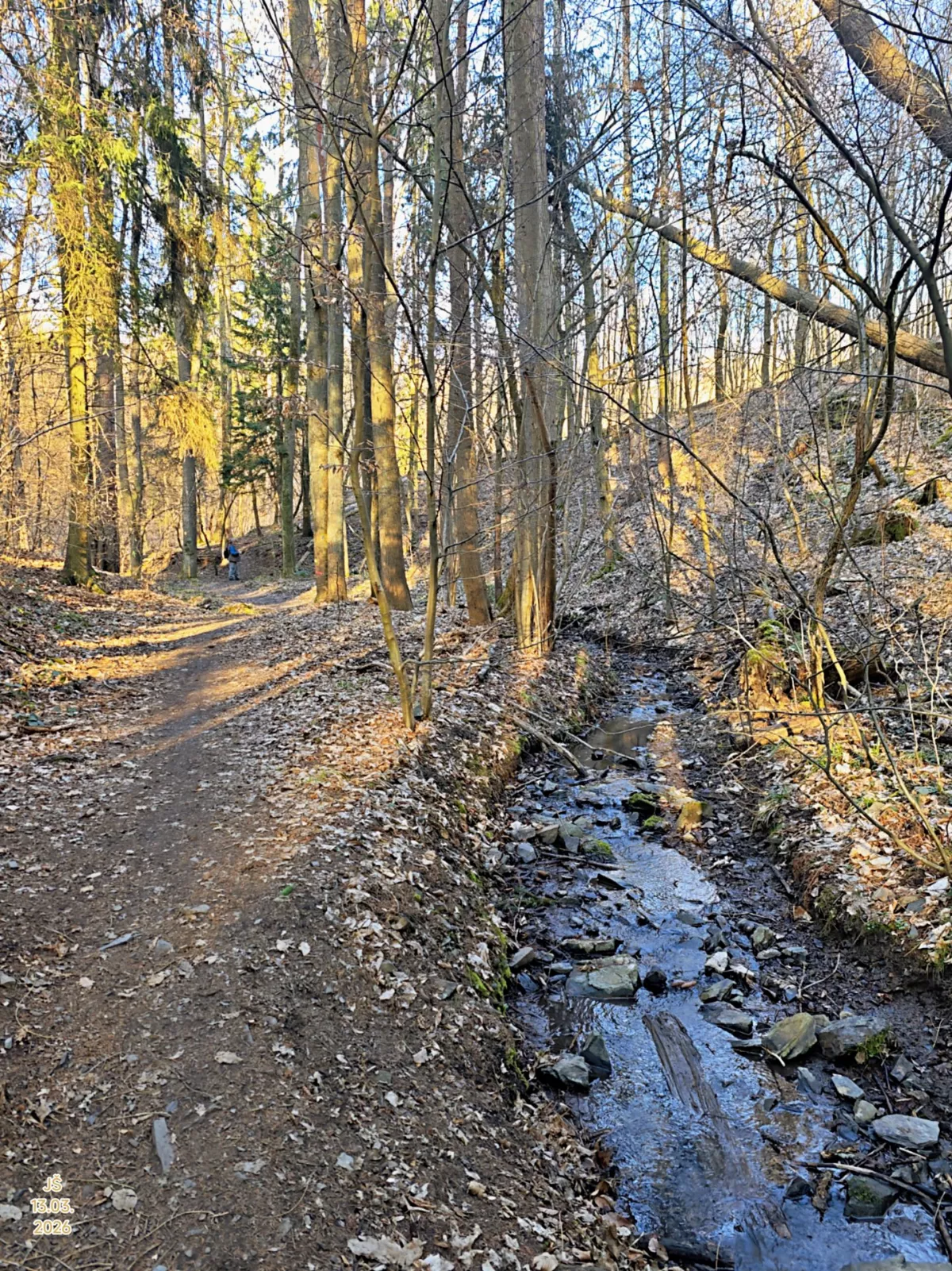 Dnešní skoro jarní desetikilometrová procházka. Moc toho ještě nekvete, viděla jsem pár lýkovců, jaterník má zatím jen poupata. Na zahradě toho kvete mnohem víc a létají i včelky. Právě nastává peklo pro alergiky, kvetou lísky a olše. Jívy už jsou krásně stříbrné. Ohnivce jsem neviděla žádné, ale pár houbiček ano. A něco jsem určitě přehlédla. Ale procházka to byla moc pěkná.
