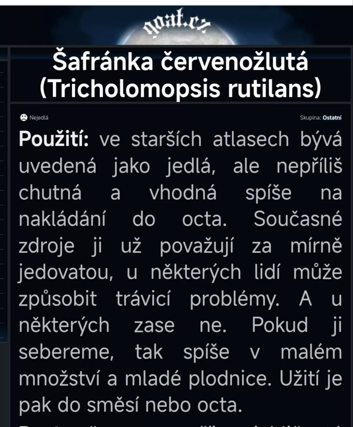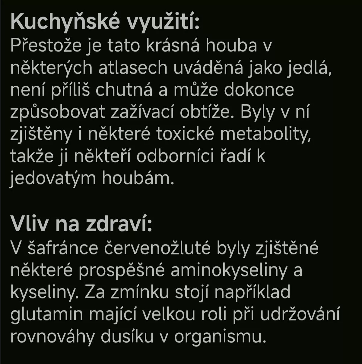 Nejen pro Kalfu🍀🙂 Já osobně šafránku nesbírám, chuťově mi připomíná šupinovku kostrbatou (zemitá příchuť), navíc je trochu nakyslá...