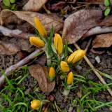 Kytí: Křivatec český (1-3), Baňatka obecná (13-14), Rozrazil potoční (15-16), Líska obecná (17-18), Kosatec síťkovaný (32) Jasmín nahokvětý (33-38), Skalník Dammerův( 39).