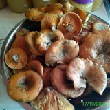 dnes jsme zajeli ke včelaři pro med a i do lesa na ryzce se šli podívat a pár kousku natrhali našel se i křemenáč 2 malé hříbky ale ryzcu bylo hodně v lese hlavně pod smrky