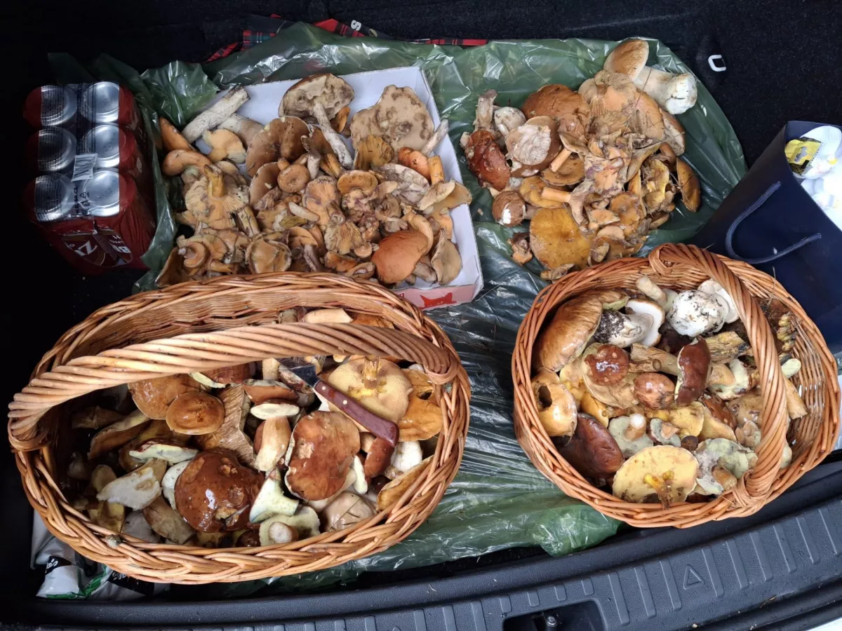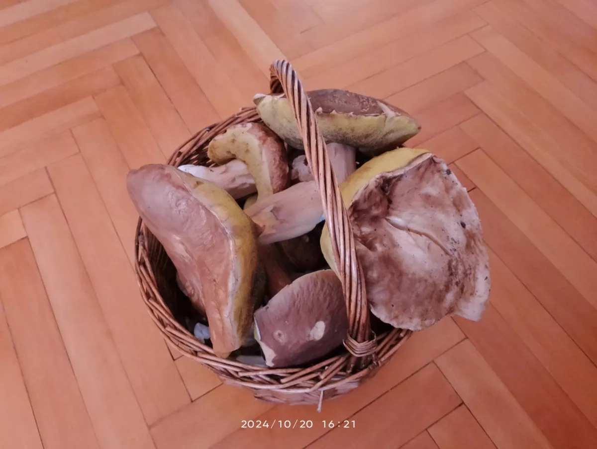 Roste úplně všechno a všude hríbků sice uz méně za 2 hodiny plný košík a taška-okolí Bechyně podzimní les je nádherný😀