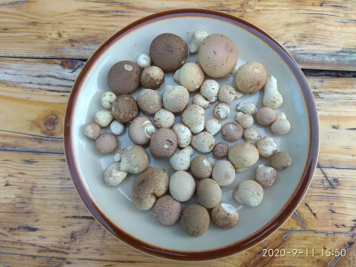 dnes na Pálavě.Vatovce-pýchavky,na které jsem šel,mají smulu že rostu kolem chodniku někdo je spatřil dříve než jsem přišel udělal z nich snéhuláka-nabodal je na větev -prostě zničil i takoví jsu houbaři nebo výletníci