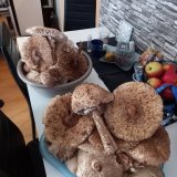 Dnes odpoledne sem po 18 dnech zavítal na houby do západní části Ždánického lesa,a prošel se třiapůl hodinovou tůrou po své obvyklé trase.Nalezl jsem to,co mi ukázala při mém příjezdu na parkoviště jedna houbařská rodina ve svých košících.Bedle,a jednu sem našel opravdu gigantickou na místech kudy sem nešel asi pět let.Dále sem nalezl obrovité klouzky téměř na témže místě.Také sem našel velké píchavky, i když sou vlastné malé :-).V lese bylo někde vlhko,a pokud vydrží slunce svit,ještě to bude na houby zajímavé.Pokud se chcete jen projít,a jen něco málo nalézt,tohle je Vaše chvíle.
