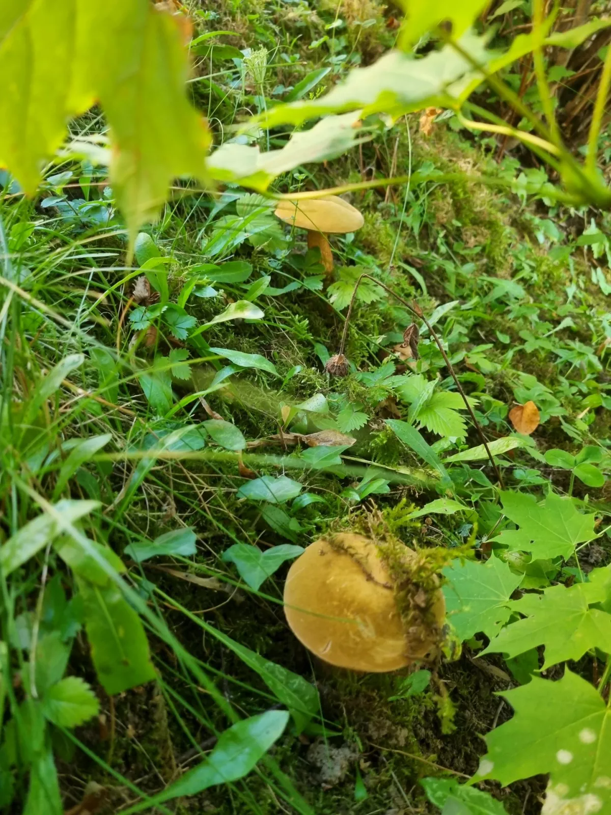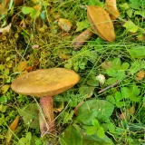 Na Chodská 21 rostou hřiby medotrpké (a můchomůrky Vittadiniho), ale často tam jezdí sekačka. Fotky z 6.8.2022: