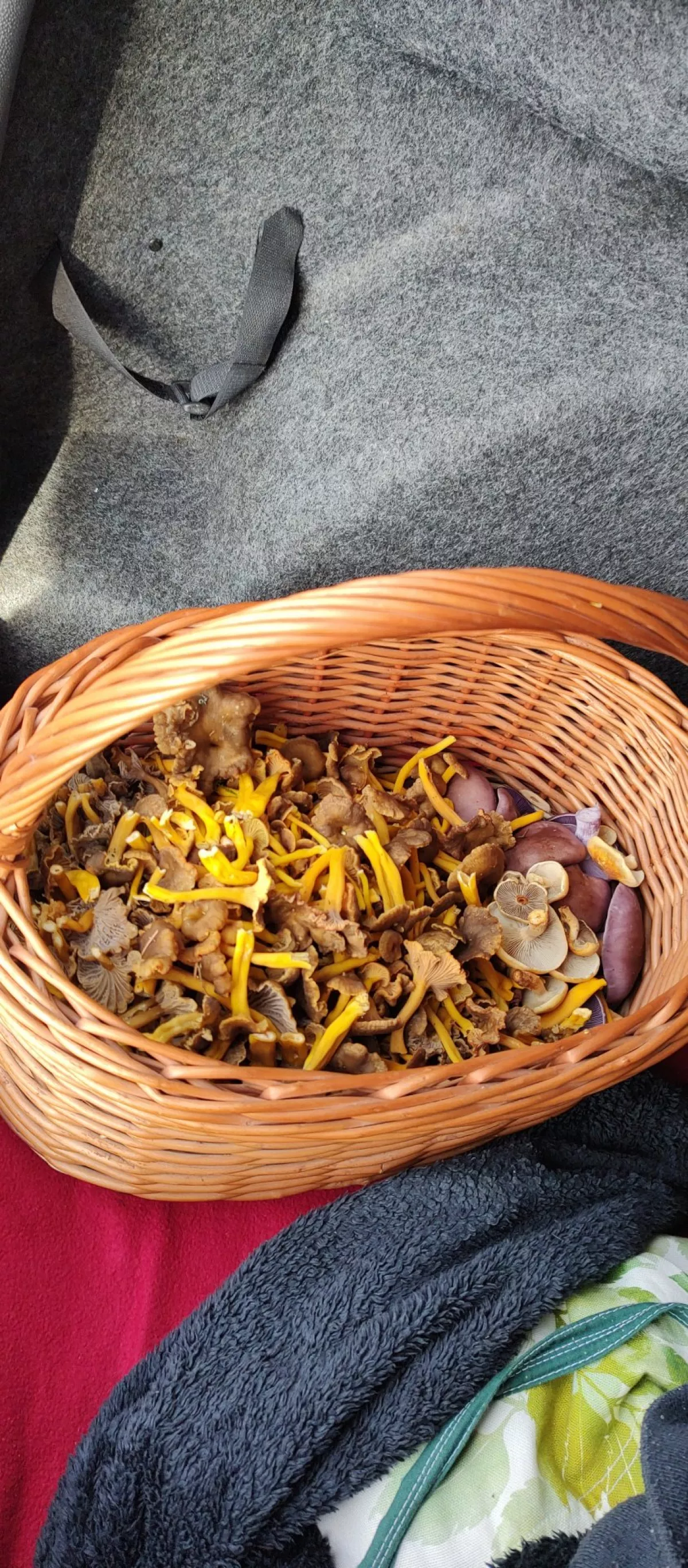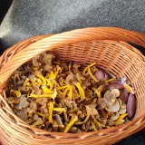 Dnes se nakonec zadařil plný košík hub, přijít o týden dříve, byly by dva. Musela jsem přebírat ze starších kousků. Z 99% liška nálevkovitá, asi 6 menších hříbků, čirůvky fialové 6 kusů..