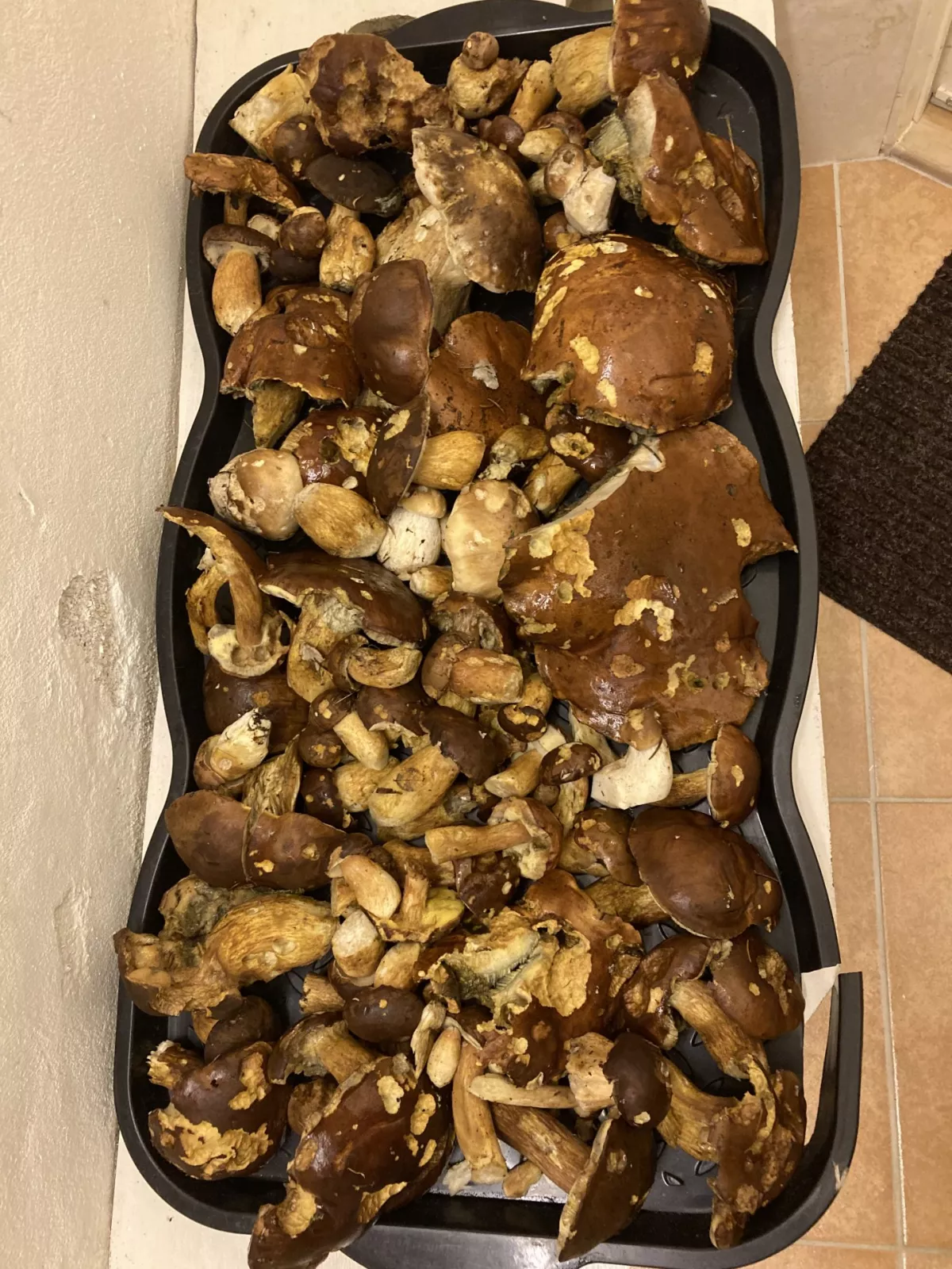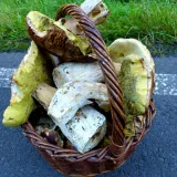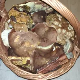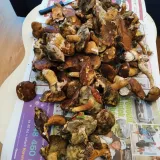 Dnes ráno, Mnichov, dva plné košíky. Praváci, šafránky, sem tam poddubák, starý masáci. Houby mokré, příšerně sežraný od slimáků.
