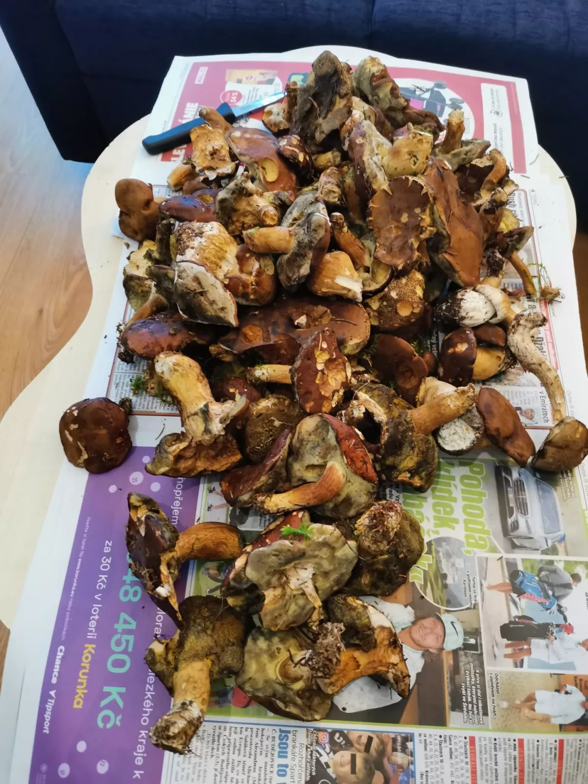 Dnes na procházce po Mariánských lázních nasbírána taška hub objemově jako 2 koše. Všechno krásně mladé a pevné, sem tam starší hřib. Našly jsme hnědáky, růžovky, lišky, píchavky, praváky, klouzky, kozáky, hřiby nachovýtrusné, babky (těch opravdu mnoho) a lišáky zprohýbané (také mnoho). Vzhledem k nalezenému množství jsme v lese nechaly lakovky ametystové a holubinky. U listnáčů bylo velké množství listnatých hub, pro mě však neznámé.
