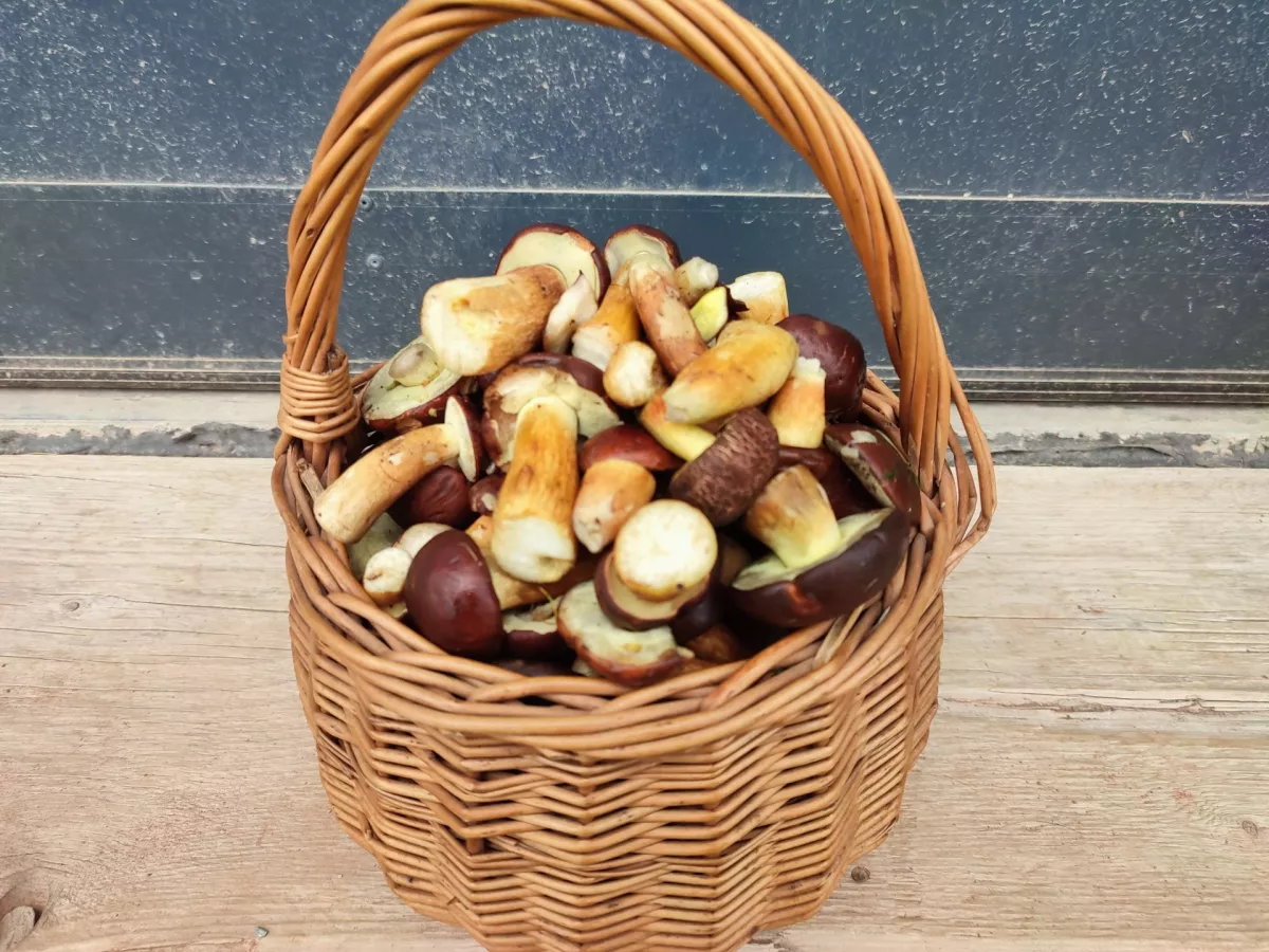Včera lesy na Rychnovsku, za dvě hodiny koš plný hřibů. Několik již obrovských starých. Krásná houbovačka.