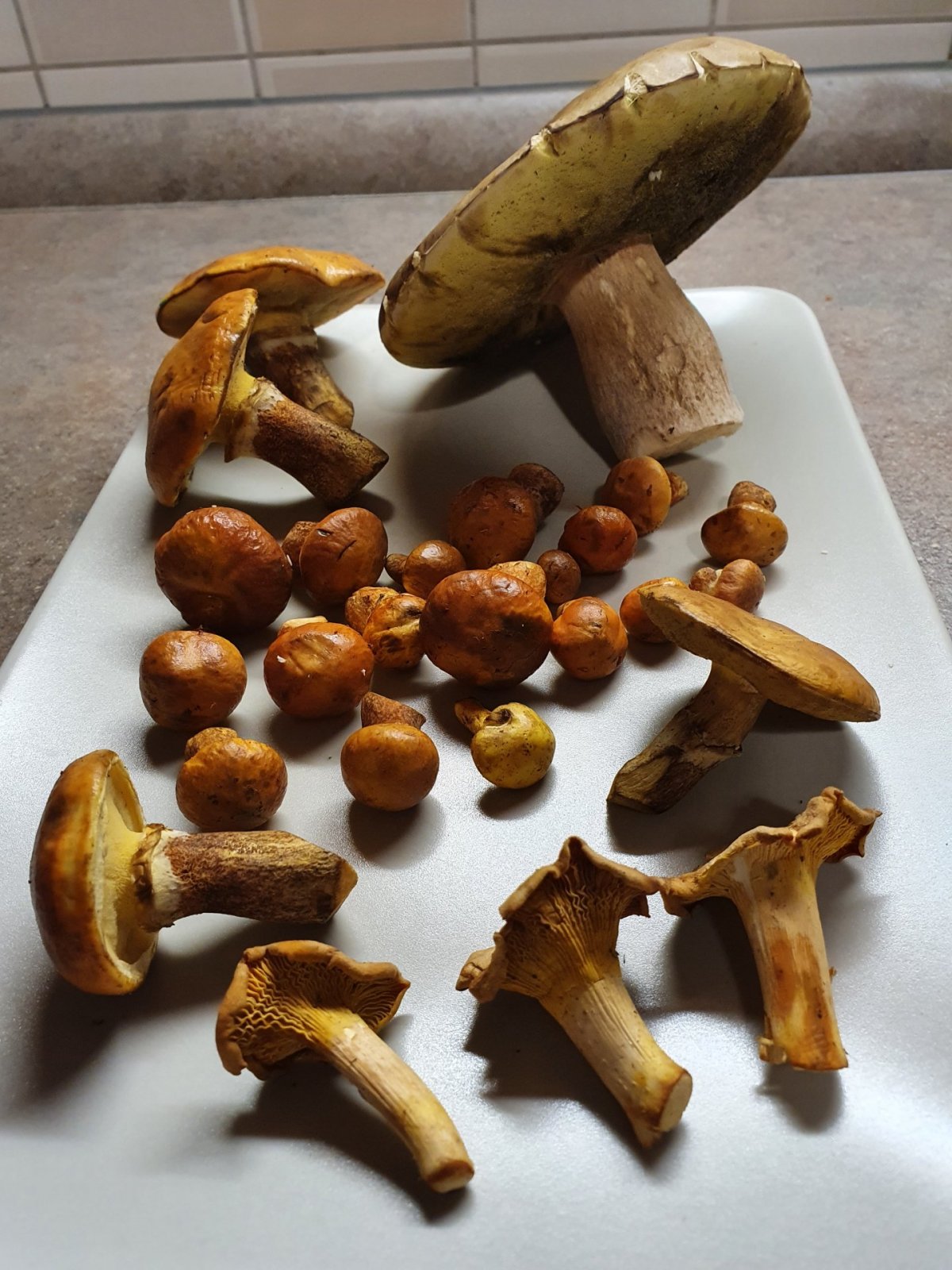 Včera okolí Trutnova, stále dost sucho, ale vesměs na místech, kde je vlhčeji, se dá něco najít. Klouzky sličné, holubinky, pár růžovek, pár praváků, ale hodně červivé a pár usychajících lišek. Přes dvě hodinky i s focením cca malý košík hub.
