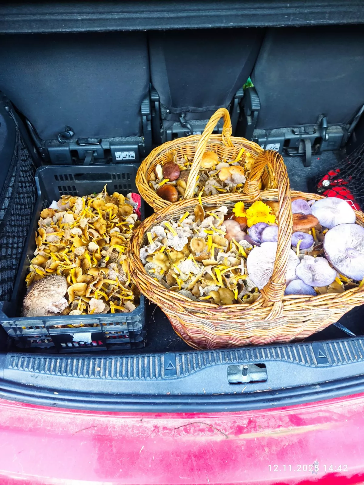 Košík plný po 8km, hezká procházka barevným lesem :-)