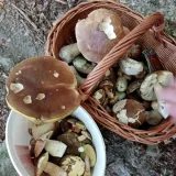 Překvapuje mě, jak jsou si někteří jisti, že opravdu nic neroste, dokonce i ti místní. Včera pod Lysou horou plný koš - 5 kg - Křemenáče, Kozáky, Hřiby smrkové, Hřiby hnědé, pár babek, dnes o něco míň 3 kg. Ne, nejsou to žádné žně. Není to sběr hub, ale opravdu hledání. Křemenáče v trávě pod břízami nebo osikami se musí vyšmátrat v trávě. Praváci většinou po jednom až po dvou, pak zase nic. Babky hodně plesnivé, přestože povrch lesů je suchý. Ale pod povrchem je vody dost, na Lysé spadlo minulý týden až 180 mm srážek! Kolikrát jsme vlezli do dalšího lesa a nebylo tam nic. Chce to trpělivost a najít místa, kde rostou a taky zkušenosti. Místní chataři také tvrdili, že nerostou.