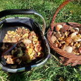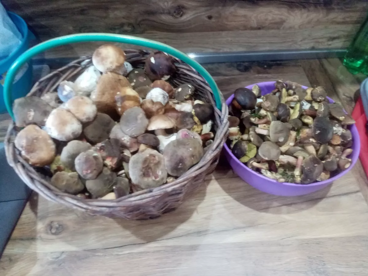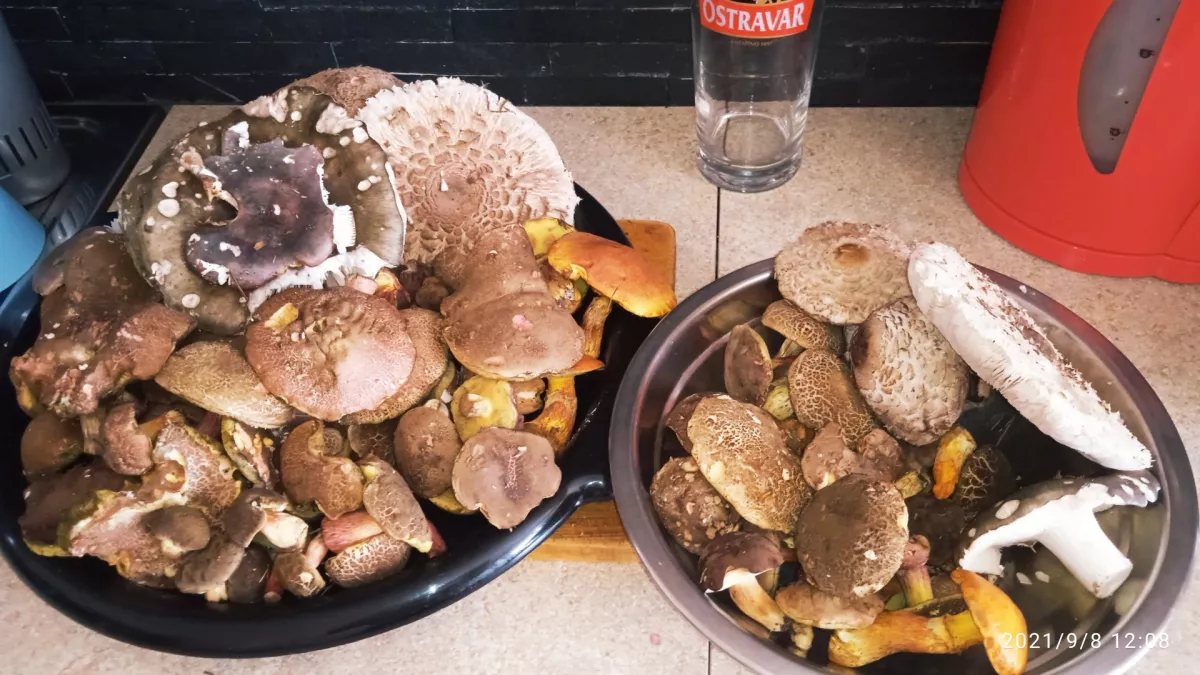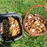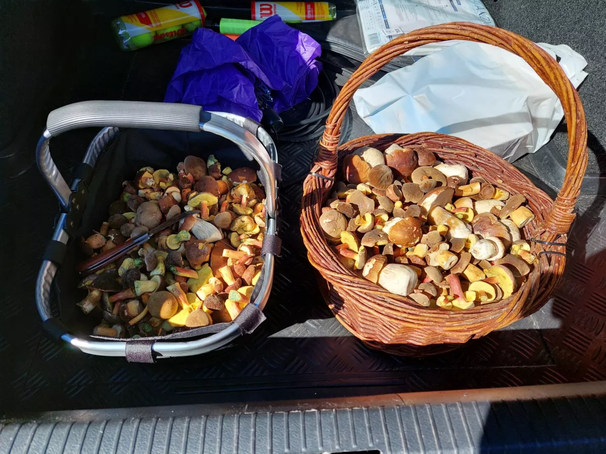 Dneska Řeka, plný koš praváků,lišky, kotrč. Musel jsem jít dvakrát do lesa a k autu. Jen stará remcá že to musí krájet, kolega z Lomné říkal že taky žně. Snad se mi podaři i zítra. Po víkendu tam nebude zas nic.