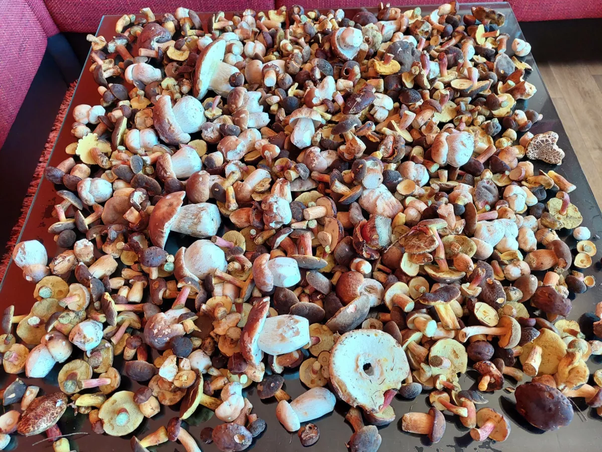 Lesy kolem Karlové Studánky vesměs vysušené, houby žádné, prostě uklizeno. Pouze ojediněle na vlhčích místech suchohřiby žlutomasé - mini hlavičky, praváci několikakilometroví a taky mini. Sem tam liška. Je sucho, teplo a větřík to dál vysušuje.