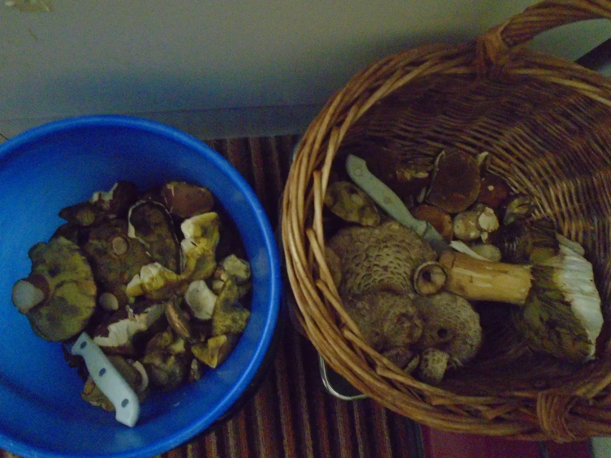 Dnes opět po týdnu u Hradce nad Moravicí v tom správném lese 😉 za 2 hodiny ve dvou dva košíky. Už to bylo slabší spíš starší větší kousky ale kupodivu min. červivé. Potřebovalo by to určitě déšť. Opět převážně praváky, snad 2 suchohřiby, pár klouzků modřínových a poprvé v životě jsem tam v těch mistech u jedné padlé tlející břízy a vedle ní jedné stojící snad jediné v celém lese našel 5 krásných mladých kozáků březových. Jinak ještě několik kovářů a tentokrát i kolodějů.