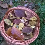Ve čtvrtek 26.10. v okolí Jablunkova. Nejvíce suchohřiby a klouzky, ale též pár václavek (začínaji), růžovek, dva kováři a dva malí praváčci, babky, jeden kozák a dokonce i kotrč. Tak pestrou směs hříbků jsem snad v košíku ještě neměla.