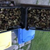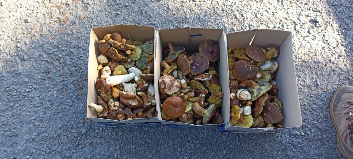 Včera jsme dělali dobrý skutek a vezli jsme 50km 2.5 pytle pečiva do zoo koutku na Bílé.Ferda (asi jelen) prý bude mít radost.Našli jsme koš a půl suchohřibů a "černohlávků" Černohlávky krásné a úplně zdravé, suchohřiby převážně taky ale všechny hlavičky okousané od veverek.Je vidět že rostou ještě dost a veverky spíš jen mlsají.Podle kamer tam byl dnes pořádný mráz tak toho asi dost přešlo mrazem.