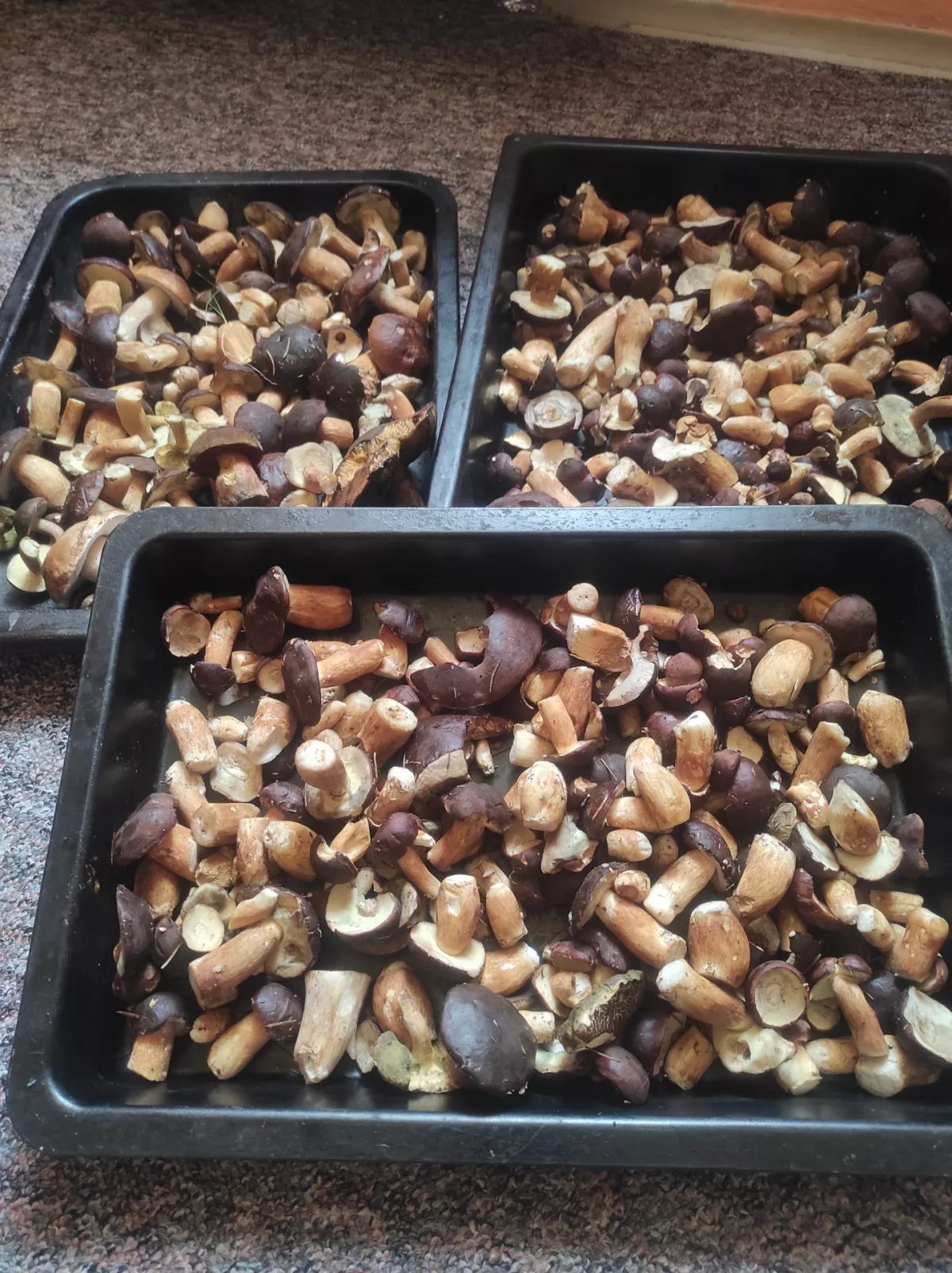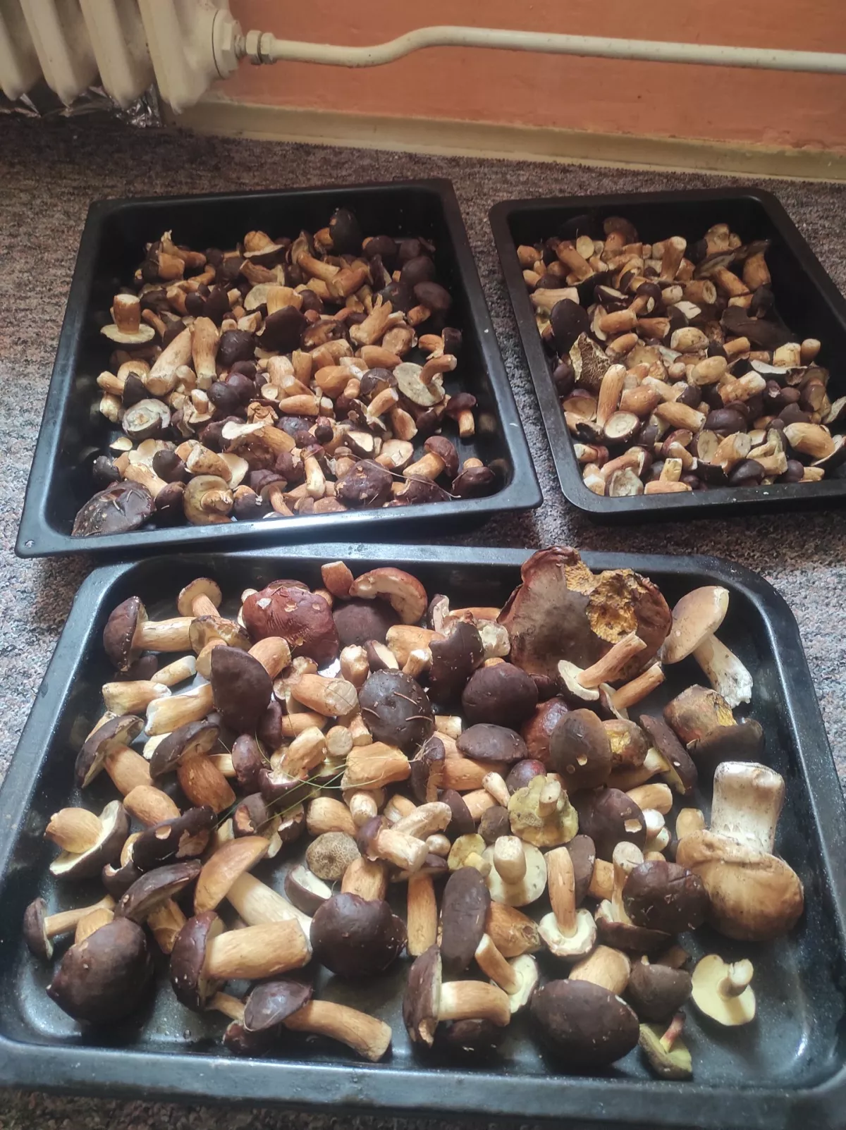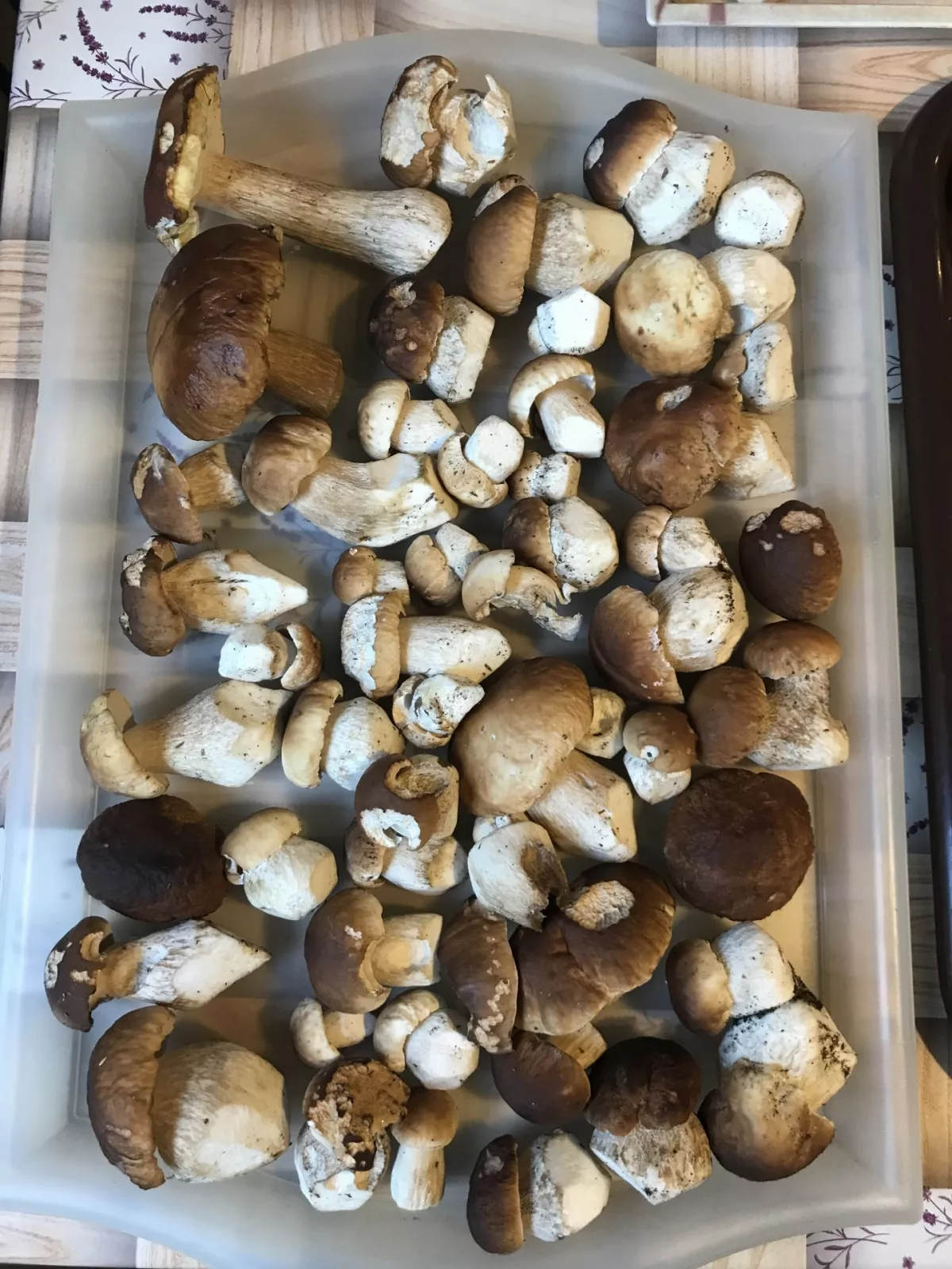 Dneska na Bílé od 6 do 9:30 celkem 78 praváků (polovina chrobavých noh) 31 hnědáků 3 modráky a 1 křemenáč u odjezdu parkoviště plné i na hamrech cestou snad 50 aut houbařů....