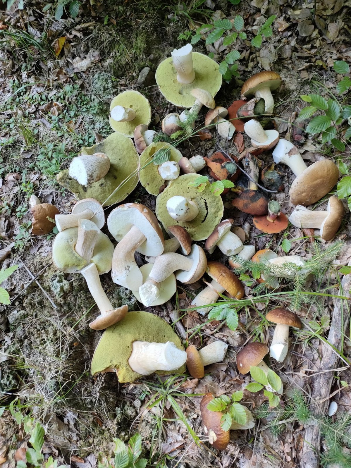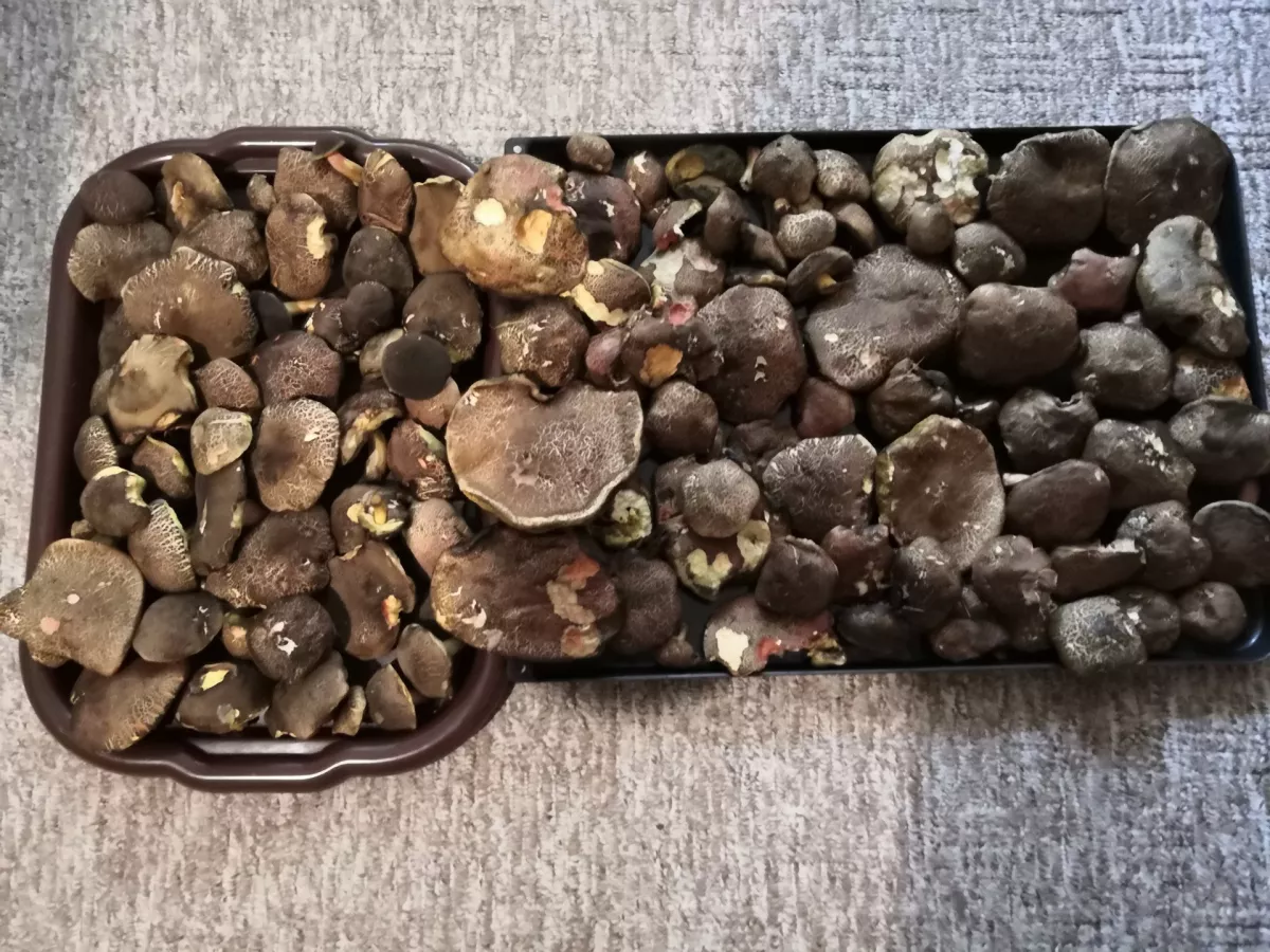 Včera okolí Karlovy studánky Jeseníky,směska praváků,hřib smrkový,babky a klouzek.Po 2a 1/2hod přesně tolik jako ostatní na fotkách podemnou.Stačí to ale žádné žně to nejsou.Já byla spokojená.