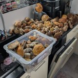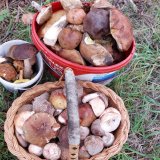 Zdar,dnes nečekaně Bílá,mě neznámá místa se synovcem.Převážně vysoký smrkový les.V lese vlhko,byla kolem 8.00mlha,pak zmizela,slunko naplno.Sem tam osamělý modrák,pravák,sucháč.Modráky většinou větší,praváky taktéž,ožrané,sem netam nožka prožraná ,sucháče mladé ,pěkné.Vše ale ve vysokém lese,v nízkém chladněji,nic tam nebylo.Zdá se mi,že ty praváky končí,moc mladých neleze.Většina hub také na krajích lesa.Teď se má v noci dost ochladit,chce to přes den 16,20 stupňů.2,5hod.v lese ,nahozeny 4km...10x,16x,10x-modrák,pravák,sucháč,1,030,1,070,0,3kg po očištění.Houby již podušeny,polovina rozdana.