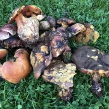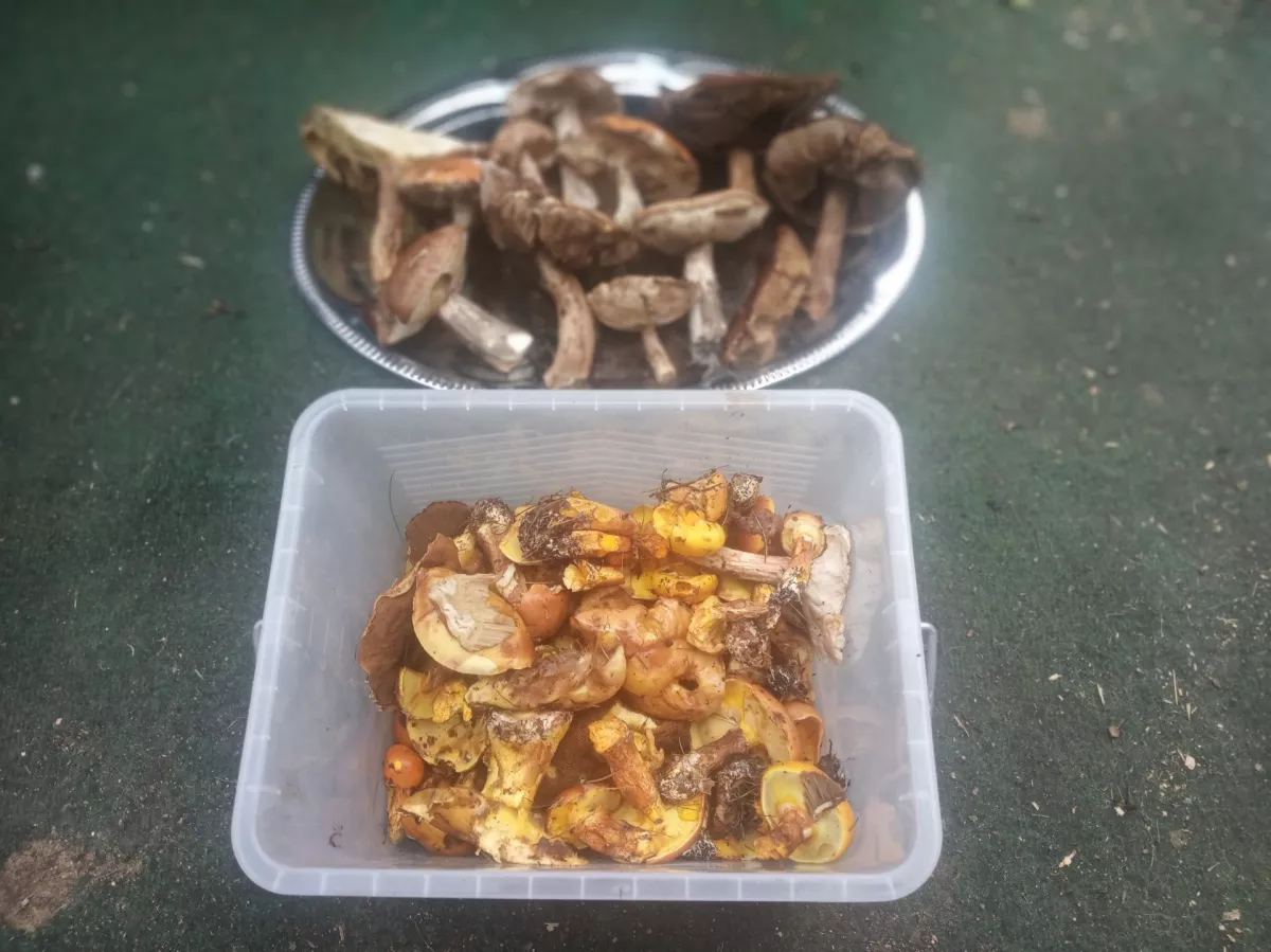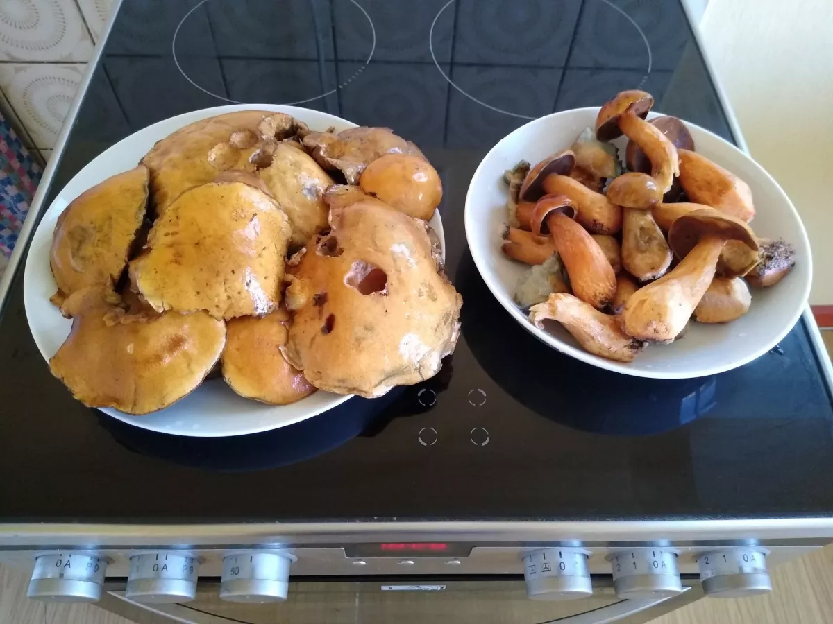 tak v okolí Horní Břízy včera příjemné překvapení.70 máselek(hřib strakoš),3x klouzek zrnitý,11x klouzek sličný(modřínový),1xkřemenáč osikový,1xliška obecná,1xmuchomůrka růžovka(masák).Kromě toho tam byly 4 kozáky březové,ale ty už vzhledem k dešťům nebyly ve zpracovatelném stavu.Suma sumárum třičtvrtě košíku...