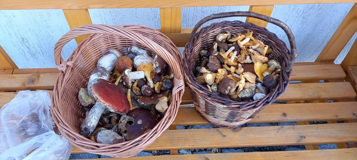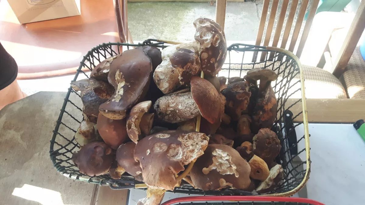 Neděle Bezdružicko. Téměř dva košíky. Praváci, poddubaci, lišky, křemenáči, lišáci, kozáci, sem tam babka. O co méně sežrané od slimaku, o to víc červivé....
