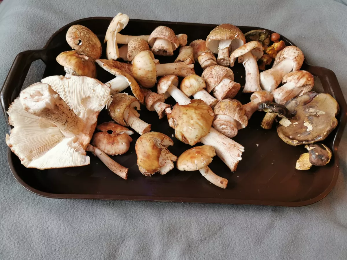 Dnes okolo Říčan. Než jsem vlezl do lesa, tak jsem si chtěl zapálit, ale říkám si, že až po prvním hřibu. Hodně růžovek a než jsem našel toho prvního, mohl jsem cigarety ždímat. Taky jsem se mockrát zbytečně těšil a byl to hořčák. Vracím se z5 jako vodník. Nachozeno 14.500 kroků. Růžovky na sádle s kmínem, neznám nic lepšího. Na 40 min. v troubě, na 220 a v půlce promíchám. Někdo mě ukamenuje, ale osobně dám jednu kostku masoxu. Užral bych se :-D