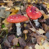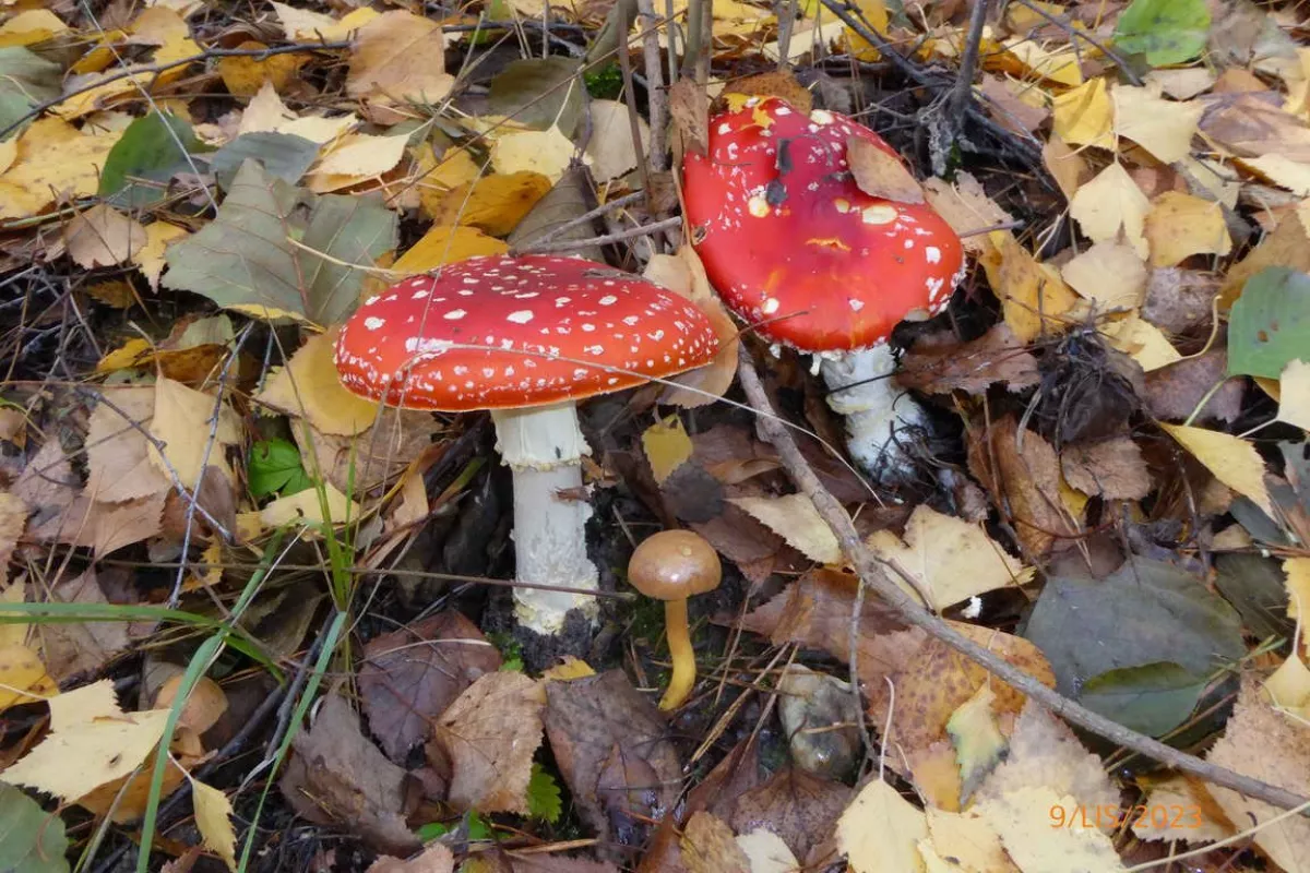 Křivoklátské lesy. Dnes asi naposled. Houby sice stále rostou, ale v listí jsou velmi dobře ukryté. Ale i tak dobré. Hřib smrkový, hřib hnědý, křemenáč, kozák, klouzek. A stále rostou i nové muchomůrky červené.