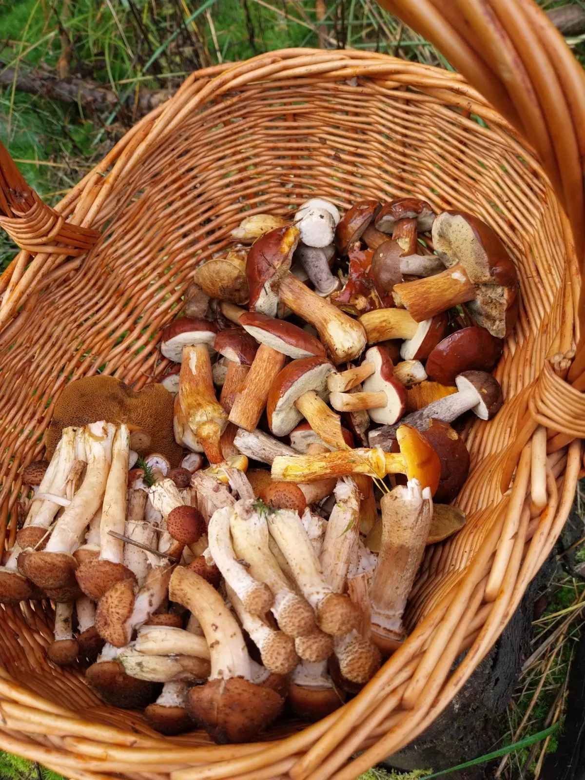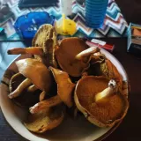 Dnes asi 2. hodiny v lese mezi Mýto - Strašice. Několik Hřibů, smrkový, hnědý. Holubinky mandlové a klouzci. Pokryté dno košíku.