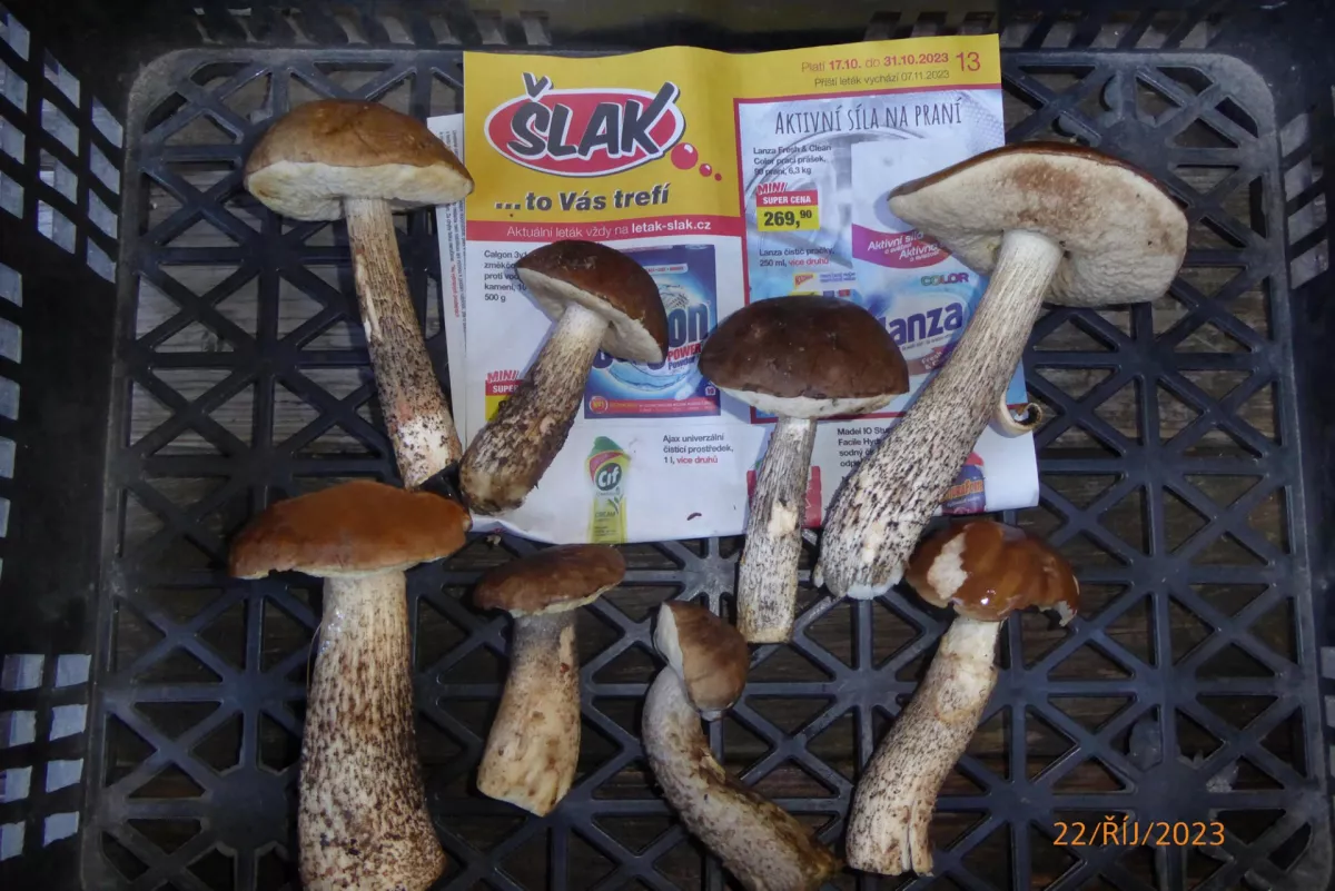 Dnes Tehovec-Vojkov. 2 hřiby hnědé, 5 žampionů a několik píchavek. Celkem 20 dkg hub za 2,5 hodiny. Letos už do lesa nejdu, protože je to ztráta času.