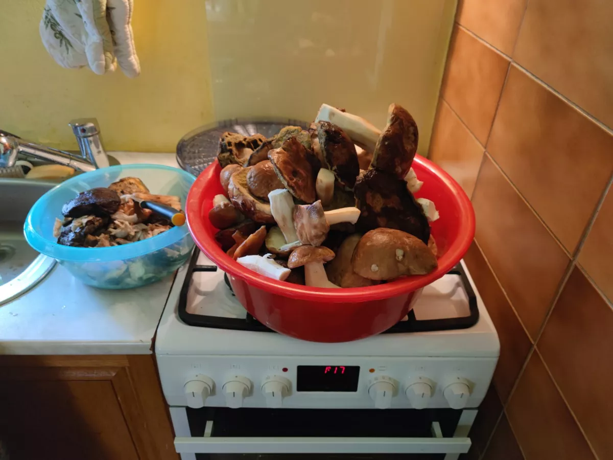 Dobříšsko. Za hodku plný koš. Jako bonus sirovinka a stročky trubkovité, výborné sušené do vánočního kuby.