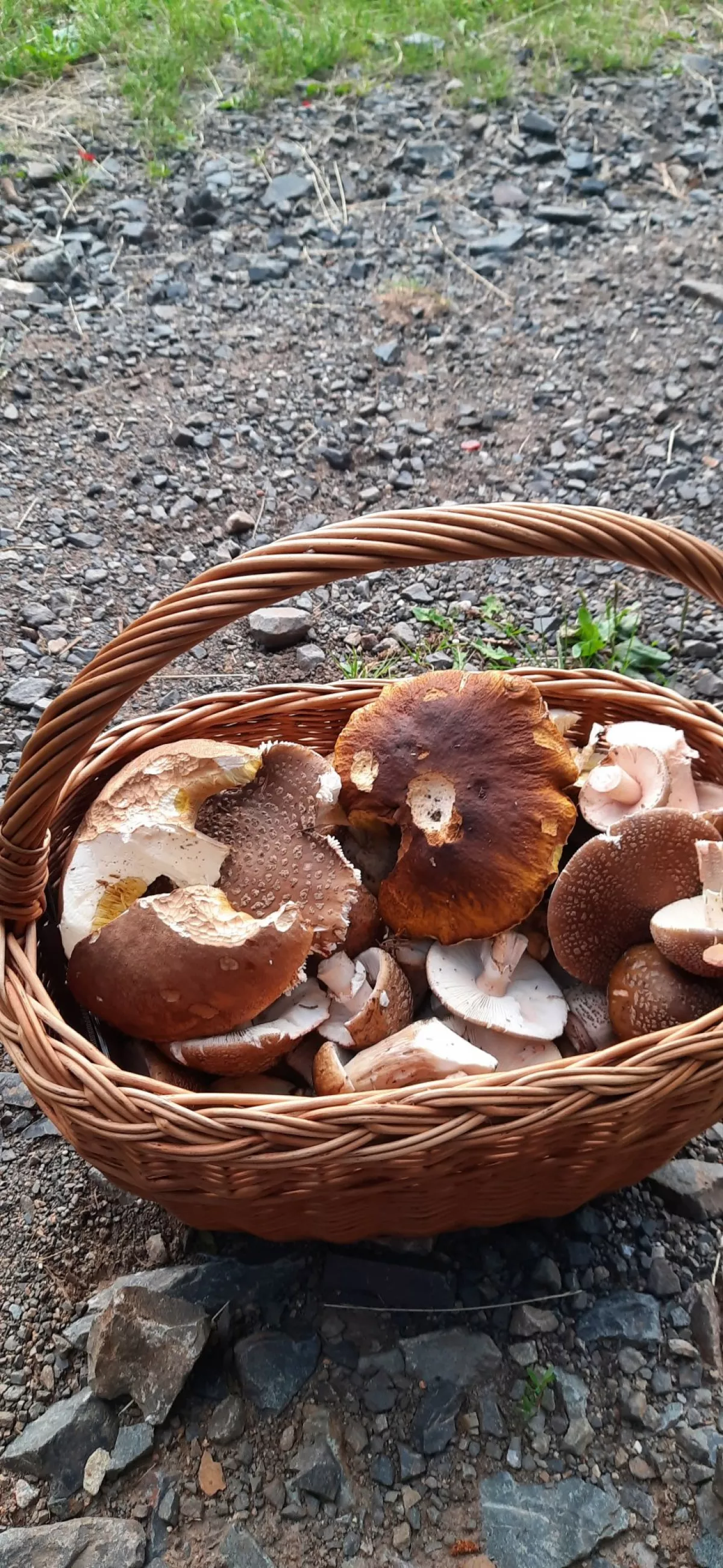 Ta houba v pravém koši s červenou nohou a žlutými výtrusy vypadá na kříště.