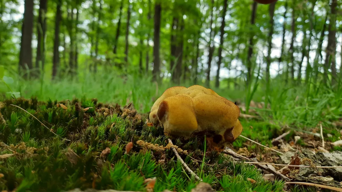 Lesem = spíš myslím že srostlá pýchavka horská = nejedlá
