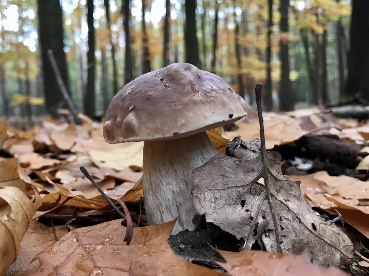 Hledání hřibovitých v podzimním listnatém lese to je těžká písemka. Přišel jsem si jak sniper. Mravenčím krokem a "skenováním" listí jsem se "dopracoval" k touženým dubákům.